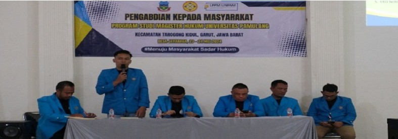 Sebanyak 23 mahasiswa dari Program Studi Magister Hukum, Program Pascasarjana Universitas Pamulang (Unpam) melaksanakan pengabdian kepada masyarakat di Kabupaten Garut. Kegiatan ini berupa penyuluhan hukum yang ditujukan bagi para kepala desa dan perangkat desa/kelurahan di Kecamatan Tarogong Kidul, dan berlangsung di Aula Desa Jayaraga, Jum'at (24/05/2024).