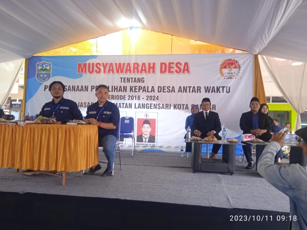 Tribuana News. Banjar - Ahmad Afrizal Rizqi, M.Pd, terpilih menjadi Kepala Desa Rejasari Antar Waktu periode 2018-2024 dalam Musyawarah Desa yang dilaksanakan oleh Pemerintah Desa Rejasari, Rabu (11/10/2023) yang bertempat di halaman Kantor Desa Rejasari, Kecamatan Langensari, Kota Banjar, Jawa Barat.