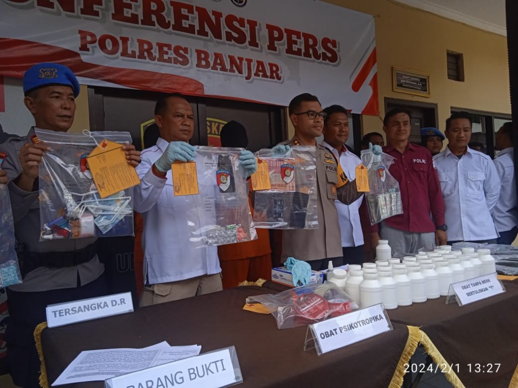 Tribuana News. Banjar - Jajaran Satuan Reserse Narkoba Polres Banjar berhasil mengungkap kasus peredaran obat-obatan terlarang jaringan Pulau Jawa, pengungkapan kasus tersebut disampaikan Kapolres Banjar, AKBP Danny Yulianto, S.I.K., M.H. saat melaksanakan konferensi press, Kamis (1/2/2024) bertempat di Halaman Sat Reskrim Polres Banjar, Polda Jabar.