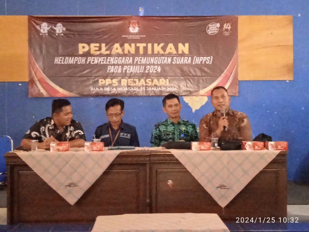 Pelantikan KPPS dihadiri Camat Langensari, Kepala Desa Rejasari, Ketua beserta jajaran PPK Langensari, Ketua serta jajaran PPS Desa Rejasari, Babinsa, Bhabinkamtibmas.