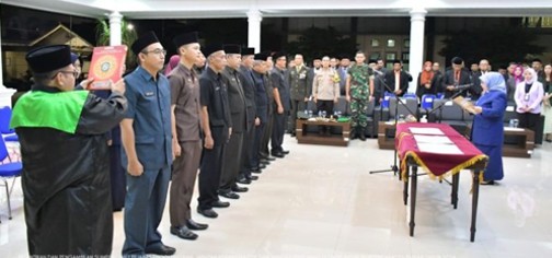 Penjabat Wali Kota Banjar, Dr. Hj. Ida Wahida Hidayati, S.E., S.H., M.Si., melantik dan mengambil Sumpah/Janji Pejabat Tinggi Pratama, Jabatan Administrator, dan Jabatan Pengawas di Lingkungan Pemerintah Kota Banjar Tahun 2024, bertempat di Pendopo Kota Banjar. Rabu malam (08/05/2024).