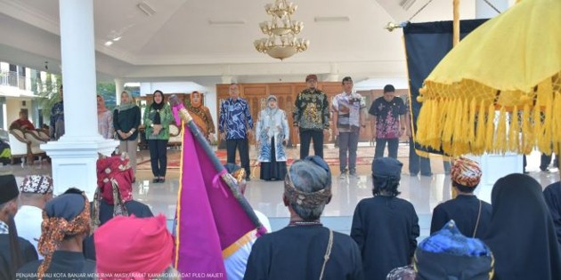 Penjabat Wali Kota Banjar, Dr. Hj. Ida Wahida Hidayati, S.E., S.H., M.Si., menerima masyarakat Kawargian Adat Pulo Majeti dalam acara Seba Hasil Bumi, bertempat di Pendopo Kota Banjar. Jumat (12/07/2027).