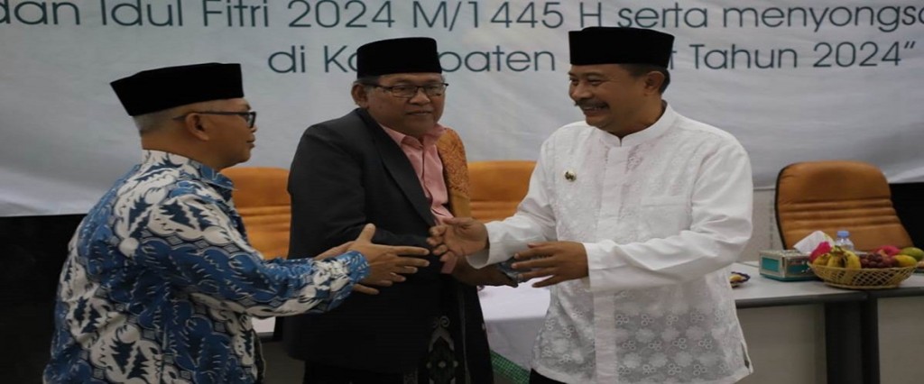 Penjabat (Pj) Bupati Garut, Barnas Adjidin, menghadiri acara Silaturahmi Ba'da Idulfitri 1445 Hijriah yang berlangsung di Kantor Majelis Ulama Indonesia (MUI) Kabupaten Garut, Jalan Pramuka, Kecamatan Garut Kota, Kabupaten Garut, Senin (13/5/2024).