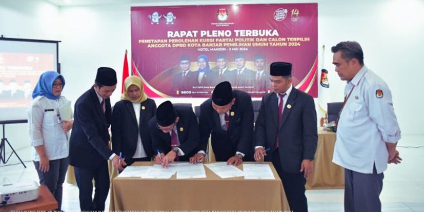 KPU Kota Banjar menetapkan 30 Calon Legislatif yang lolos menjadi anggota DPRD Banjar. Ketua KPU Kota Banjar, Muhammad Mukhlis menuturkan, di Kota Banjar, kursi Legislatif berjumlah 30, tersebar di 3 (tiga) Daerah Pilihan (Dapil), yakni Dapil 1 Kecamatan Banjar dan Kecamatan Purwaharja, kemudiam Dapil 2 Kecamatan Pataruman, dan Dapil 3 Kecamatan Langensari. “Hari ini kami melaksanakan Rapat Pleno Terbuka untuk menetapkan perolehan kursi Partai Politik (Parpol) dan calon terpilih anggota DPRD Kota Banjar dalam Pemilu Tahun 2024. Di Dapil 1 ada 12 kursi, Dapil 2 ada 9 kursi, dan Dapil 3 juga 9 kursi,” ujar Ketua KPU.