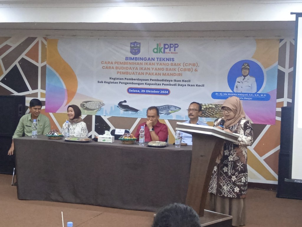 Tribuana News, BANJAR -- Pemerintah Kota Banjar melalui Dinas Ketahanan Pangan, Perikanan dan Pertanian melaksanakan bimbingan teknis cara pembenihan ikan yang baik (CPIB), cara budidaya ikan yang baik (CBIB) dan pembuatan pakan mandiri, Selasa (29/10/2024) bertempat di salah satu Toserba di Kota Banjar, Jawa Barat.