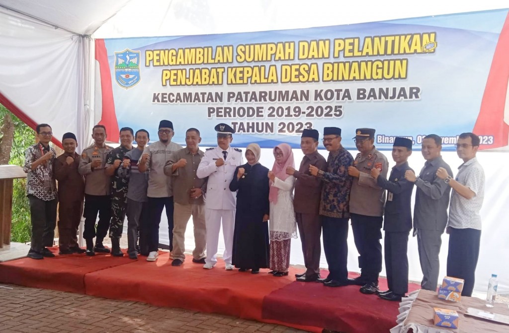 Tribuana News. Banjar -- Wali Kota Banjar, Dr. Hj. Ade Uu Sukaesih, M. Si., melantik dan mengambil sumpah Penjabat Kepala Desa Binangun Kecamatan Pataruman Periode 2019-2025, yang bertempat di Wana Wisata Pejamben Desa Binangun, Kecamatan Pataruman, Kota Banjar, Jawa Barat, Jumat (03/11/2023).