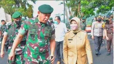 Tribuana News. Kota Banjar - Wali Kota Banjar, Dr. Hj. Ade Uu Sukaesih, M.Si., menyambut kunjungan kerja Panglima Komando Cadangan Strategis Angkatan Darat (Pangkostrad), Letjen. TNI Maruli Simanjuntak, M.Sc., ke Markas Batalyon Infanteri (Yonif) Raider 323/13/1 Kostrad, Rabu (23/03/2022).